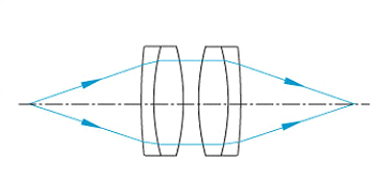 消色差双合透镜比简单的单透镜具有更多优点。它们包括色差小化,改良离轴性能,焦点光斑更小。这些双合透镜具有正焦距,且针对无线共轭比进行优化。