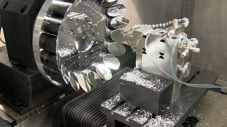 图为通过单点车床加工离轴抛物面反射镜基底: