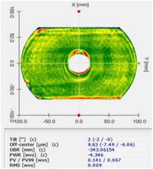 通过加工后,Luphoscan 检测PV=0.141 λ , PV 99 =0.067 λ,RMS=0.009 λ,粗糙度达到Rq=0.32nm