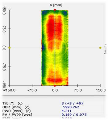 通过我们的有效口径内 Luphoscan 检测精度达到 PV=0.169 λ ,RMS=0.016 λ;干涉仪自准直检测达到 PV=0.21 λ ,